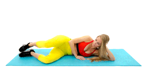 How to do them: Lie on your left side with your left hand supporting your head, your right hand on the mat in front of you, and your knees bent and stacked. Bring your legs forward to align your knees and your hips. Lift your feet up off the ground. Keeping your toes together, open your knees your top knee and close them to complete one rep. Complete 25 reps, then switch sides.