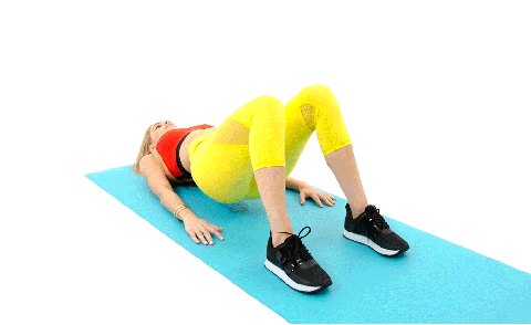 How to do it: Lie on your back with bent knees and feet flat on the floor with your arms along your sides and palms pressed into the floor. From this position, lift your hips to raise your butt off the ground. Without touching the floor, alternate between raising your left hip then your right hip to complete one rep. Complete 25 reps.