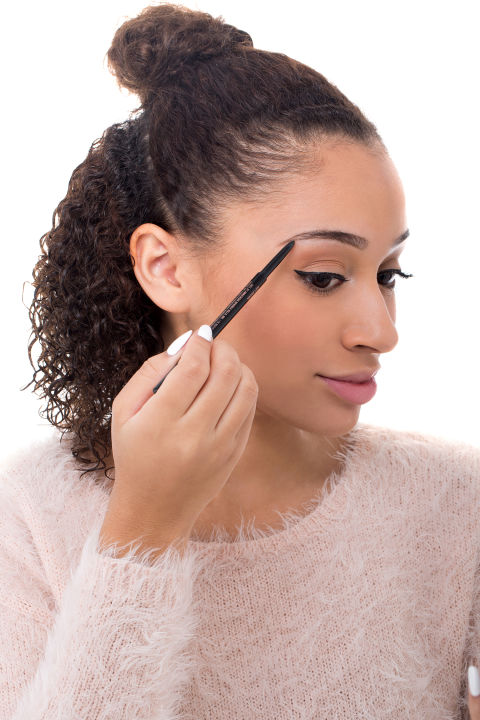 Using a brow pencil, lightly line the lower and upper arches. For a bolder look, grab an angled brush, your favorite pomade, and build gradually. It's the secret to flawless brows.
